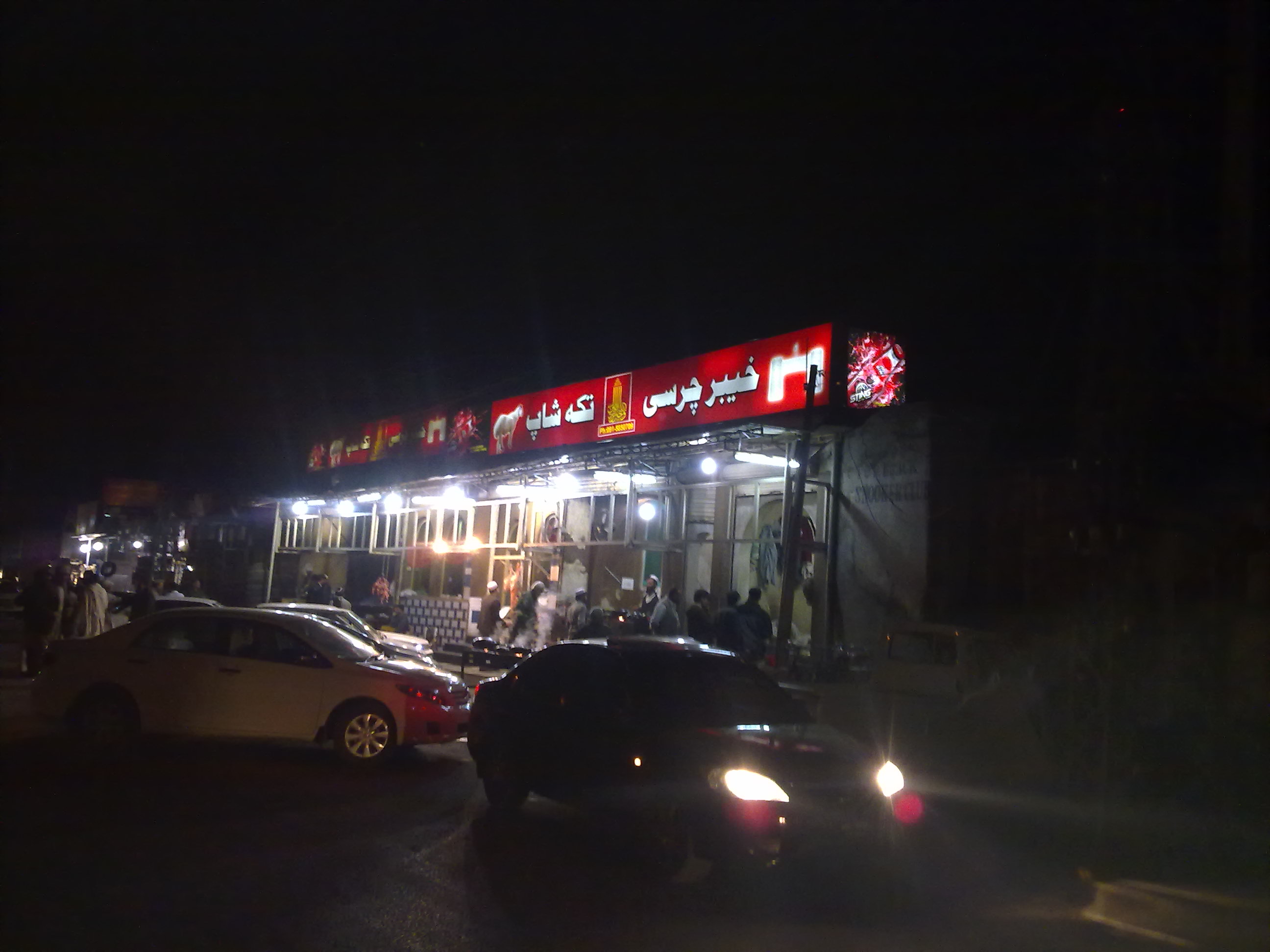 I am in Peshawar (North West, the gateway to Afghanistan and Central Asia). Just came back from dinner at “Charsi”. Charas is “hash” in Urdu and a Charsi, therefore, is a hash addict. The story is that one of the cooks many years ago was a charsi and became known for his “taste”. So eventually they renamed the place to Charsi. It has two branches; one in the old town and the one we went to on the road to Jalalabad and Kabul.