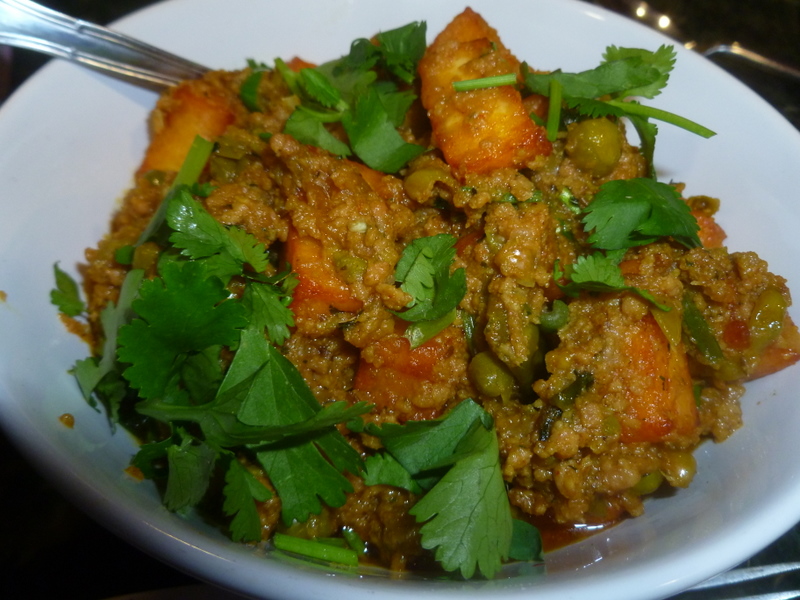 Tracey had negotiated Paneer to be added to the menu’s Keema Mutter. Genius was how she described her meal. The additional Cheese she described as both Crisp and Chewy. This was a major success. The Doggy-Bag was called for, well after Lamb Chops (shared) as a Starter…