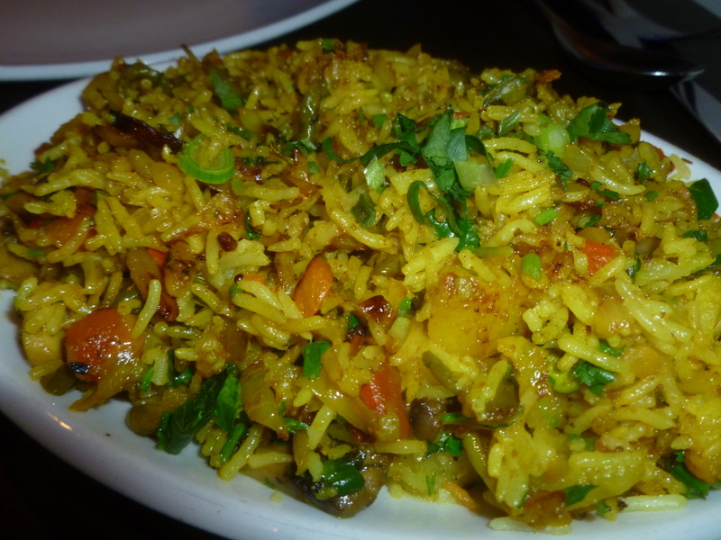 The choice of dishes on the menu was not vast and Chicken was to the fore. The description of the Kata Aloo Goshti was appealing: Herbs, Coriander, the avoidance of the Mushy Vegetable. Marg had spotted this too but opted instead for a Creamier dish, Lamb Kingfisher. A Vegetable Rice and two Chapattis were the accompaniments.