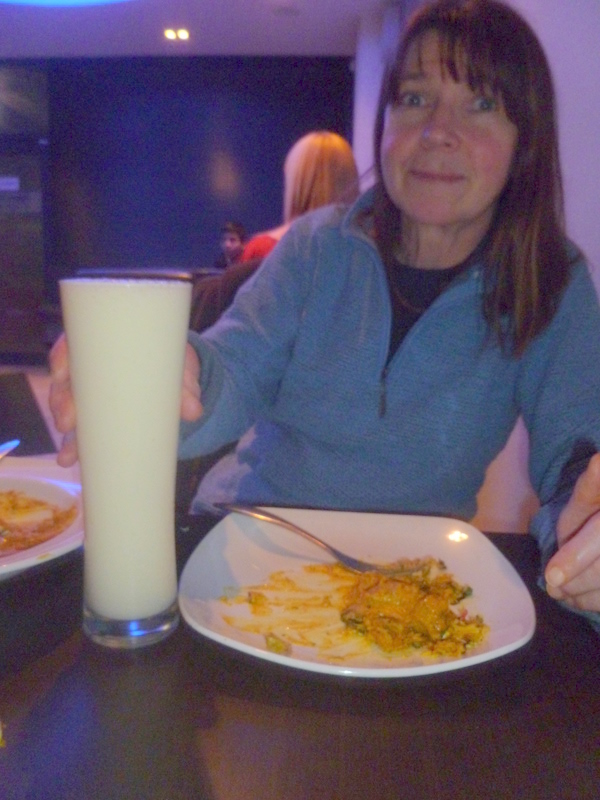 A Sparkling Water and a small glass of Mango Lassi would amuse us whilst we waited for the mains, alas the Lassi did not show. Marg asked again, still no Lassi. We were halfway through eating when it was finally delivered. Wtf? This was not Mango Lassi, they had waved the Mango over the Glass. The glass was also not small. It was sent back, a replacement was promised, meanwhile tap-water was the solution. When the Lassi finally re-appeared it was so thick it was not realy drinkable. On top of a Curry this would have an obvious effect. Most of it was left, it was – On The House – we were told.