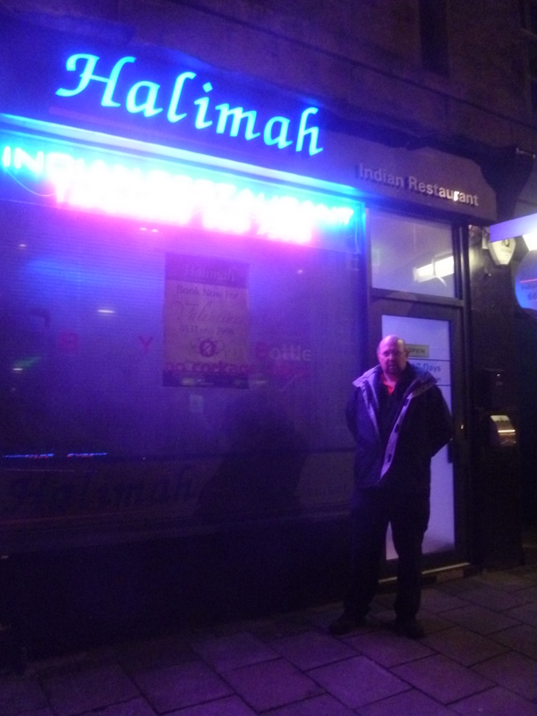 There was a choice of two Curry venues both in the High Street. We passed Halimah to check out the Shish which somehow did not reveal itself despite an advertising board on the pavement. So, back to the Halimah (76 High St, Musselburgh, East Lothian, EH21 7BX) it was. From the outside it did not look too inviting. On entering it became even less so. The music was blaring and we were shown to seat in the heart of the house right under a ceiling speaker. This was declined and we were re-seated near the door in a quieter area. The place was indeed busy, but what were they eating? By this time we had spotted that the majority of the people were female, and a certain age. We soon realised the venue was not licensed, so presumably the ladies had all brought their own bottles. This must be the local gathering pace for whatever one does late in Musselburgh on a Saturday evening.
