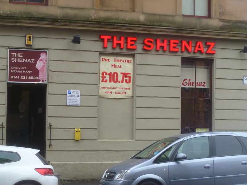 The Shenaz (17 Granville Street, Glasgow, G3 7EE) is one of Glasgow’s longest established venue dating back some fifty years. I knew they would definitely be open as there is a permanent banner advertising a pre-theatre deal. Why more places are not open late afternoon remains a mystery to Hector. The Village do a steady trade all afternoon. It is much healthier to eat before meeting The Chaps than it is to consume late evening Curry.