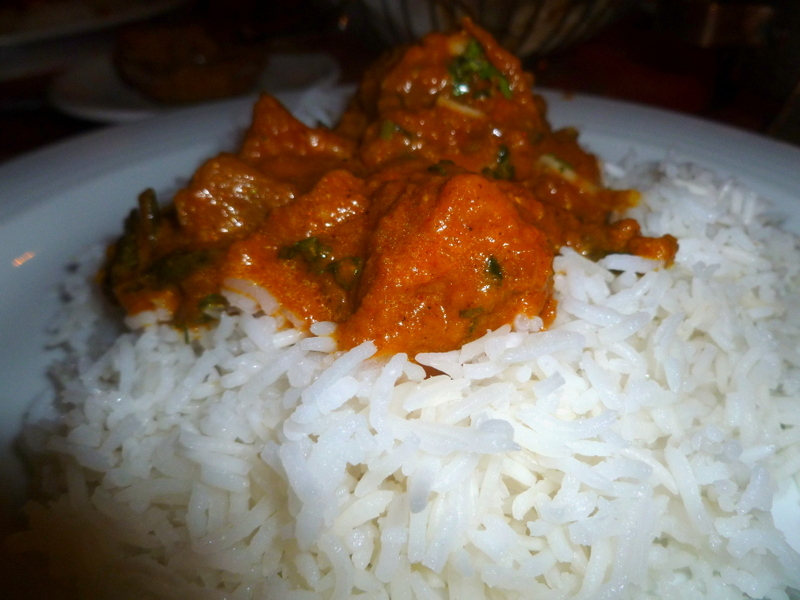 By this time I did not care. The Bhindi Gosht looked the part. The portion size was decent, the Lamb was cut into smaller pieces than at home but not Bradford-small. The Masala was quite thick with a hint of Cream but not so much that it suggested blandness. The Roti was on the crispier side of the norm and dripping wet, good. The Nan came in two rolled pieces, butter? – where? Maybe it was the Roti that was buttered, what was written?