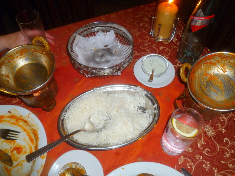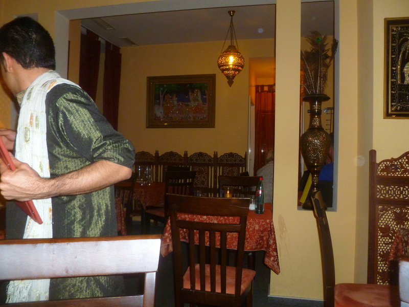 The leg work was completed yesterday, Panjab was located with ease. The tactic was to return this evening as there was uncertainty as to to the extent of business closures on Pessach 2012. Arriving at 20.10 the place was stowed. We were invited to come back in an hour and made a reservation to comply. A quick Hefe Weizen at Der Kaiser around the corner passed the time. The anticipation was building, how many German Curry houses are ever found to be this busy, at any time?