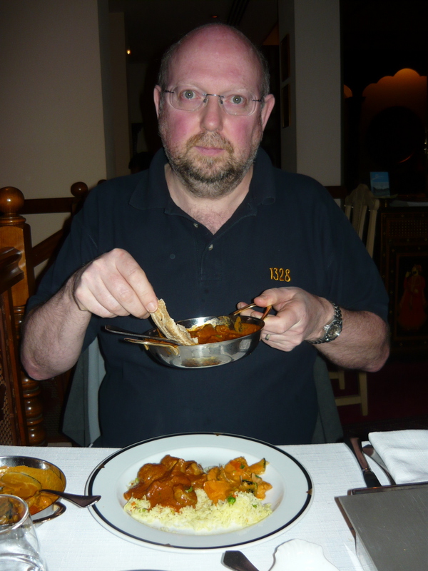 Marg was enjoying her Roganjosh. Not being too Spicy suits her. The Creamier Sauce she likes too. Marg’s Lamb also varied from tender to being harder to chew. The Legume Curry became a disputed point. Marg found this too Salty and too Spicy, I felt it was again well-seasoned and was definitely hotter than my Vindaloo. Carrot, Cauliflower and Aubergine were the Interesting Vegetables which made up the Legume Curry. To me, this made the whole meal worthwhile, without this I think I would have been writing a much more critical report. However, venues such as this should really look at what they are serving, they are living in the past if they believe what they serve up is a Curry fit for the Twenty First Century.