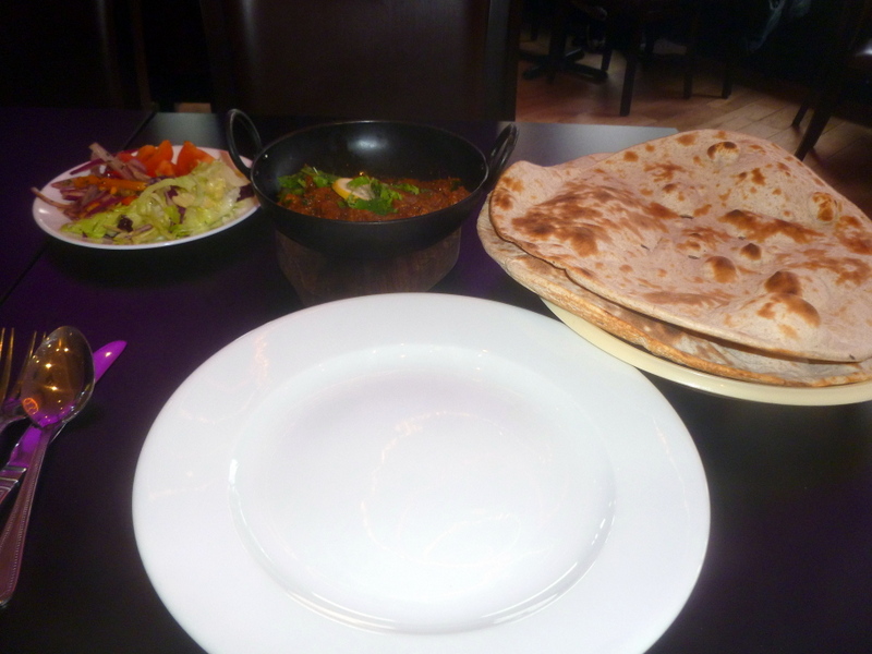 The Tandoori Roti were a hoot. I was not expecting two such large offerings. I wondered how I would eat both. The first was hot and soft-ish and was soon devoured with one third of the Lamb. However it did turn crispy quite quickly. Next time one Chapatti, one Roti, and no plate. The Salad remained untouched.