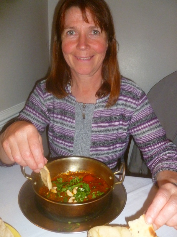 Two Chapattis and one Garlic Nan were the Accompaniments.  Marg was taking no chances either after the miniscule offerings the night before.