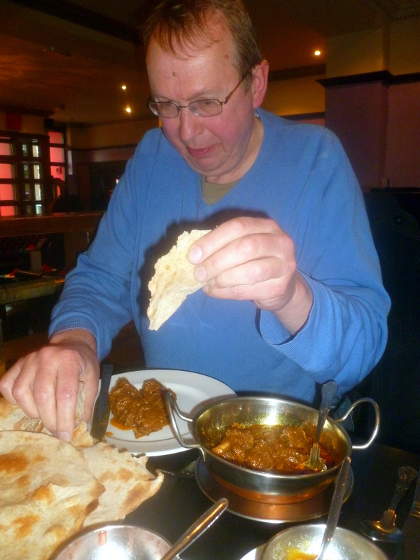We were kept amused by the Complementary Poppadoms and Onion Chutney, Marg requested some Mango Chutney and it came instantly.  The Fish Pakora was very fresh and the powdered Spice  gave it a real kick.  Mr. Holden thoroughly enjoyed his share of the Haggis Pakora – Och aye the Noor….  The Seekh Kebab disappeared without coment.