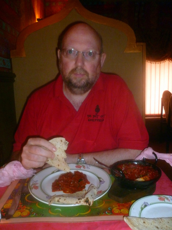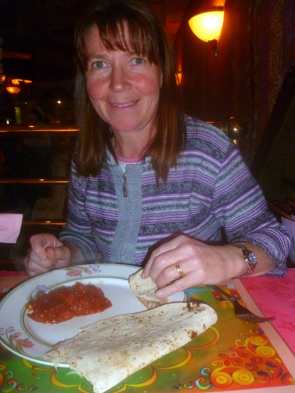 The Menu had Methi Gost (sic) under the Chicken Curry list, this was puzzling. I was considering taking advice when Marg announced that she was having the Lamb Karahi – well that’s it then – two Lamb Karahi – without the dreaded Green Mushy Vegetable. Rice was dismissed, let us eat the dish in the proper manner: three Chapattis (60p each) were the Accompaniments.