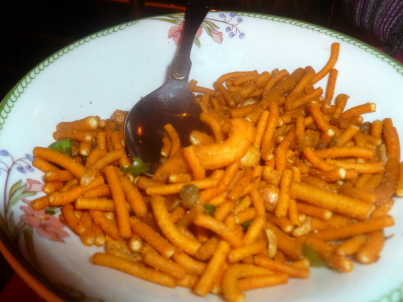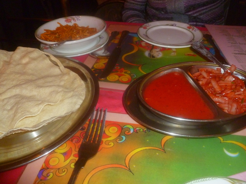 Poppadoms, Onion Chutney and a Dip were brought to the table even though they did appear on the Menu as chargeable items. A plate of Bombay Mix came too.