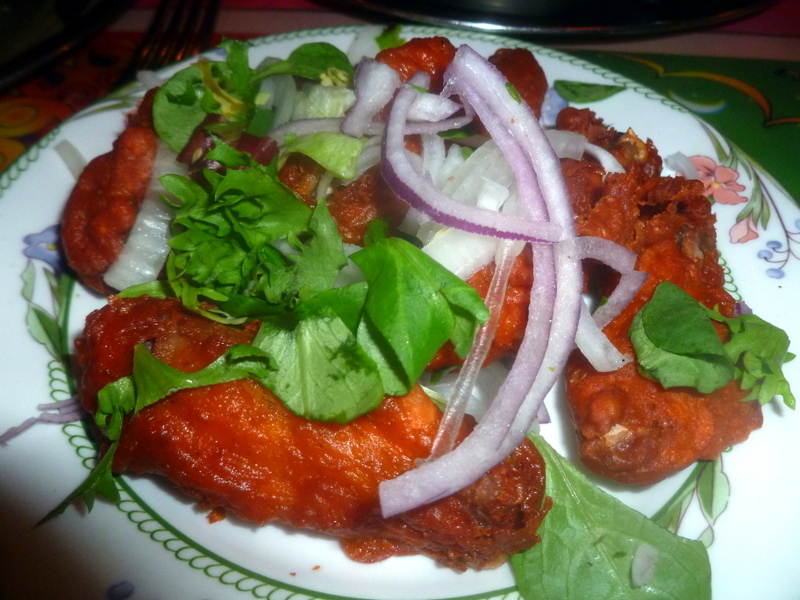 We recalled that on our first visit we had ordered Starters and then a Complimentary Started arrived too. We have not made that mistake again. Indeed just as we finished the last piece of Poppadom, a plate of Chicken Wings was set before us. These were Fresh and Spicy and fortunately Marg ate her share, else the Main Event would have suffered.