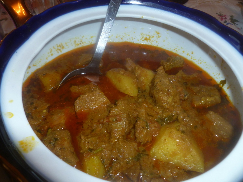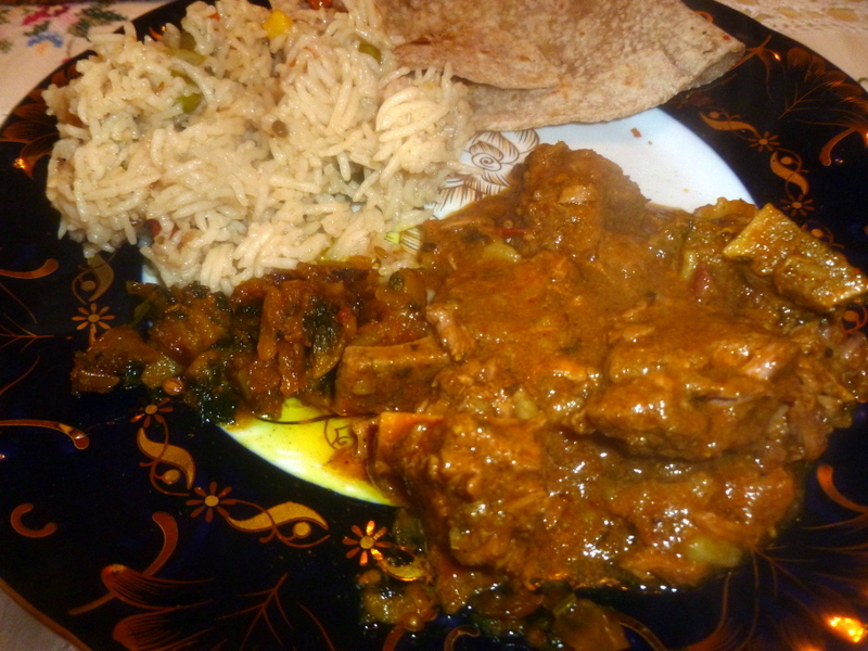 Two Bowls of Curry were brought into the room, one on the-bone, one off. A large plate of Vegetable Rice was also set before us, a Salad Bowl too. There was more. Hector had been promised Karela. Just how much can one man be indulged? A special container which keeps Chapattis warm and fresh was also introduced. Once again, how could we do this justice – we did!