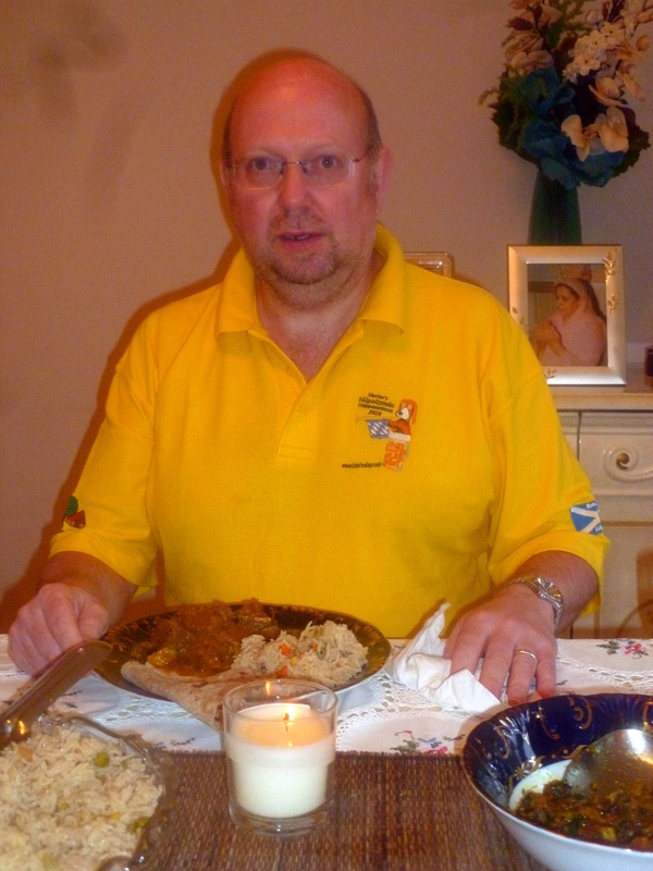 Marg and Eleanor had been sated. Dr Stan (no Photo for once!) and Hector are well practiced eaters of large volumes of Curry. We ate on, we could eat Curry for Scotland, perhaps one day we shall. Eventually I had to wave the white flag. The Quiet Man too admitted defeat.