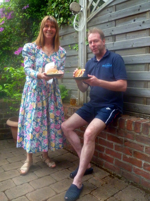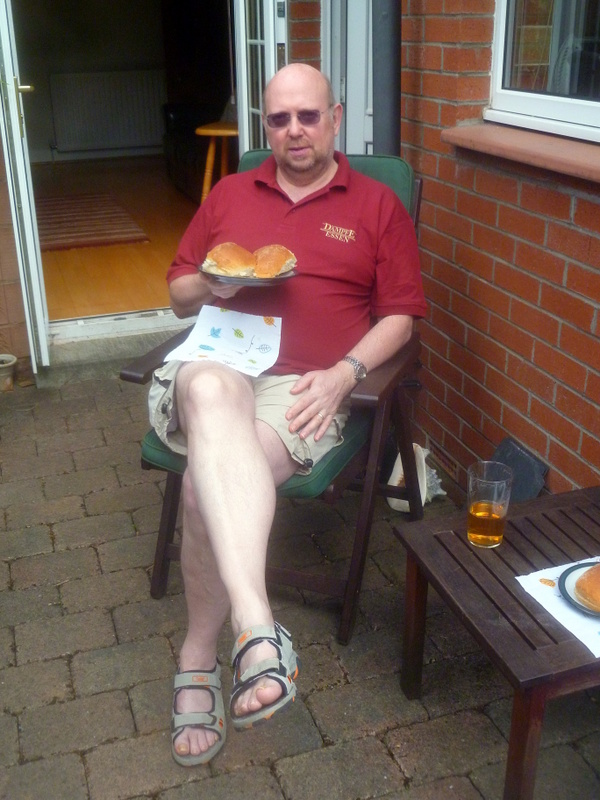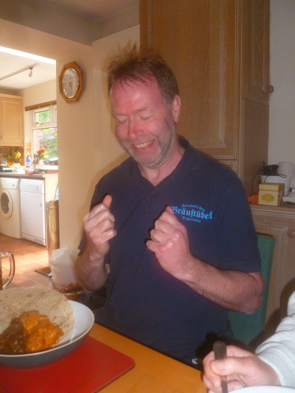 Craig and Marg had a solitary Bacon Roll as is now the custom at our Garden Parties. Hector could not refuse a second with the famous Stornoway Blackpudding. Proof, if required, that Hector does not eat Curry 24/7. With clouds blocking out the Sun for much of the afternoon it was deemed safe to sit outside with uncovered Pates and enjoy the delight of imported Deutsche Festbier. Tucher, Augustiner, Hofbräu, Spaten and Löwenbräu (Buttenheim) were consumed at a leisurely pace. The main event of the day was the serving of Yvonne’s Curry.