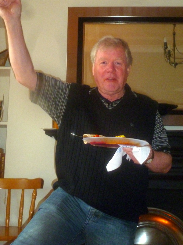 Dr. Rick was in the kitchen surveying what was remaining when the in depth interview regarding his food intake was conducted. He pointed to various containers: The Lamb was kinda’ spicy, that was sweet (the Patia) and that was moist. Thank you, Dr. Rick.