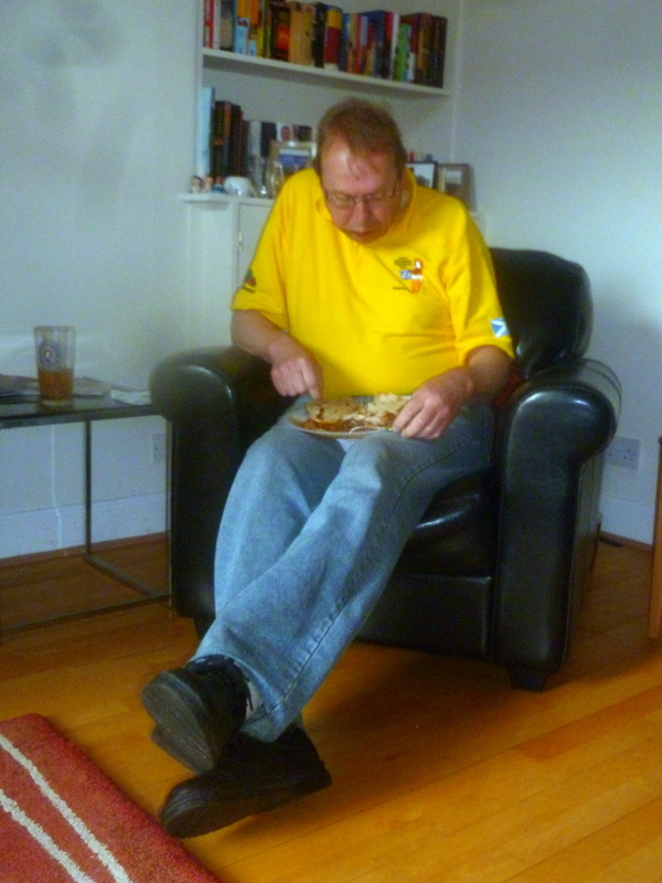George, The Duke of Hamilton and The Birthday Boy, had a – Red Chicken Dish – a Patia we conclude, but then remembered he had the Lamb Karela. I had wondered who had been lucky enough to secure the remaining portion. Very nice – was George’s verdict, I let him away with that only because it was his birthday. Anne his Dear Lady, and now known as The Duchess of Hamilton – hadn’t a scooby – what she had eaten Curry wise. Whatever it was, it was delicious. She too had enjoyed a portion of the Chicken Tandoori. I wish I could establish how many were delivered.