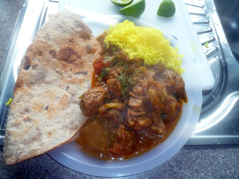 I was not bothering about this yet. With a very impressive Chapatti, some of Yvonne’s Home-Cooked Rice and legendary Onion Chutney plus the Karela Gosht, I sat down to eat. The Curry was very good, I was impressed. In no way would it rival the best of the Southside Curry outlets, however given the fact that it had travelled, twice, I have no complaints.