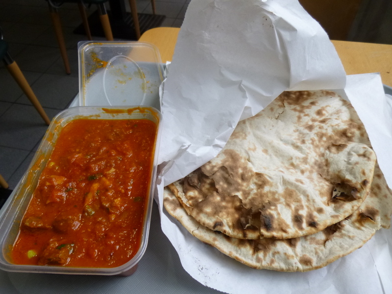 A couple sat at an adjacent table. When their meal were brought they were in larger polystyrene containers. I was puzzled as to the larger dish but realised that the Rice was in here too. So here comes the punchline – I have been advocating the opening of more Curry Café outlets in our City – how often do I frequent the old and tired places with tablecloths? – rarely! This venue has taken the Café aspect excessively towards the basic. On my last visit I was given a plate from which to eat. Available after 16.00?