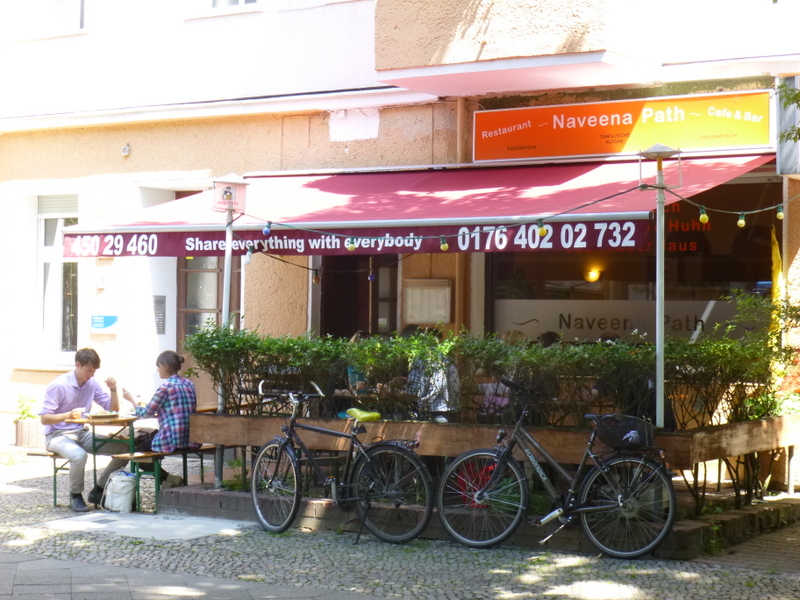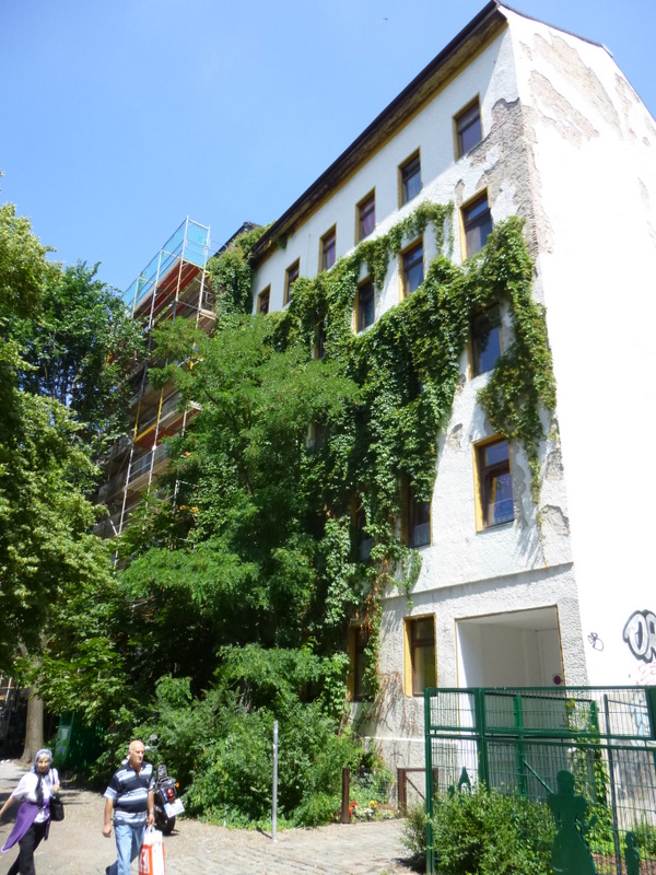 Marg had Breakfast at the Kaufhof in Alexanderplatz, Hector saved himself for a return to the Naveena Path (Tegeler Straße 22, 13353, Wedding, Berlin). The Garden Suburb of Wedding is looking better on every visit. The Block on which this modest Curry -Haus finds itself is being done up, our Pension has been let alone as the Vegetation on the Facade may well be holding it together.