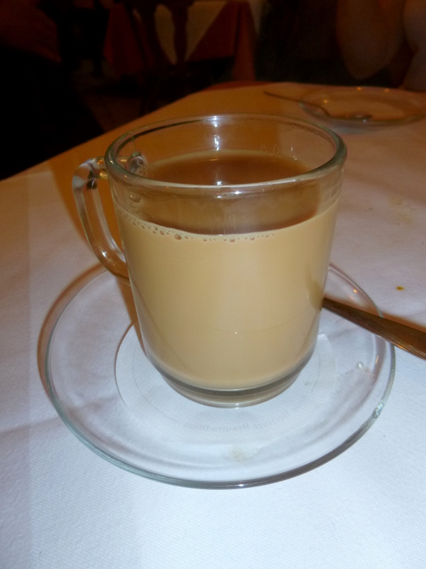 Normally this section comes after The Bill. Mein Host had looked across more than once whilst preparing the meal. As I finished eating he came over to enquire as to our level of contentedness. I had the Curry-Heute website set up on the Trusty HTC just in case. He had remembered us. We were offered Sri Lankan Tea but declined. Mein Host then Waved The Bill an offer we could not accept. Leaving and paying nothing (?) so we accepted the Tea. Hector drinking Milky Tea? This turned out to be splendid, the Cinnamon and other Spices making it a pleasant experience. We continued to Chat. One of the Young Servers was his Daughter, a Singer. The other Young Lady we conclude was neither, a pity. A Local Naveena Path Curry Fan sat at the adjacent table – he asked for Food. Now this had a familiarity about it and so I related how I do the same at Yadgar in Glasgow. The German Curry Scene was discussed – I did mention the Indian Mango in München and their Chettinad Cooking.