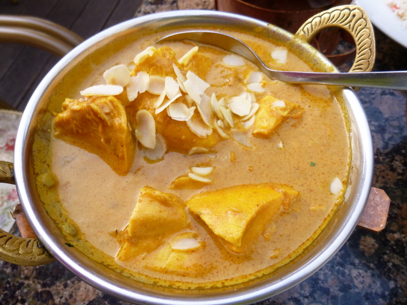 Three large Bowls of Curry and a fourth of Boiled Rice arrived, eventually. By now we were ravenous again. The Waiter spooned some Rice on to both our plates and left us to get on with it. The Lamb Dish looked Creamy, Yoghurt one presumes. Marg’s Mango Chicken I had already seen being brought by the Waiter to other tables, it was not Soup, but close to it. The Mixed Vegetables was served Dry, this looked to be the most visibly pleasing of the three Dishes.