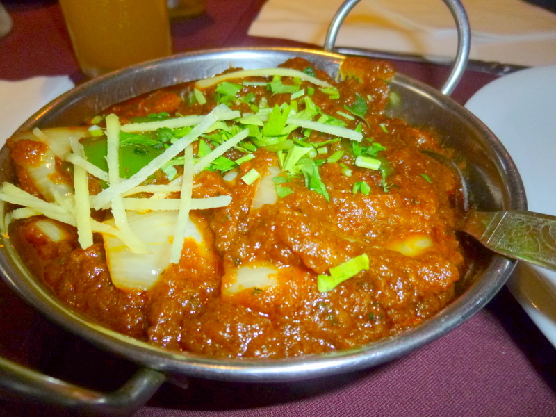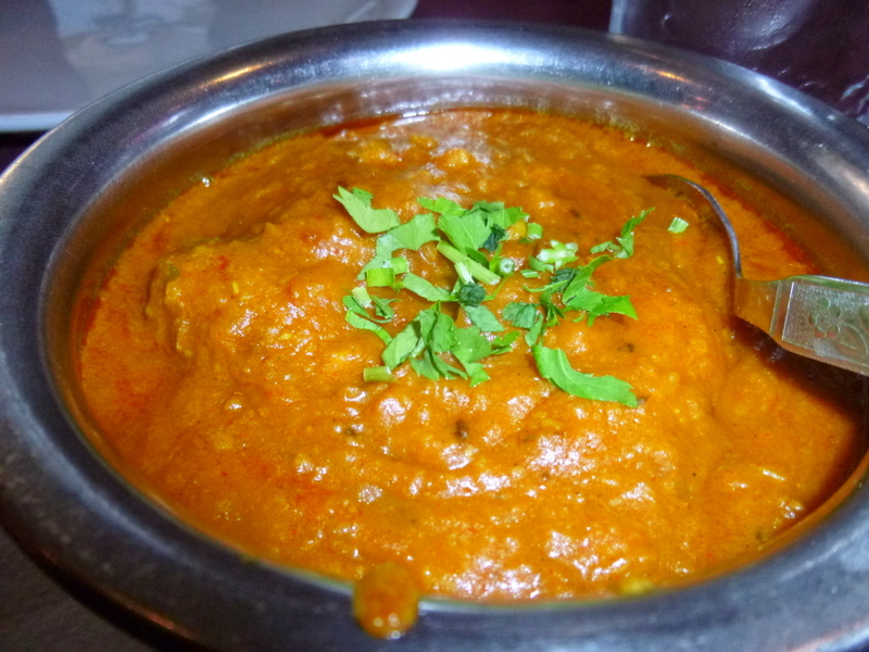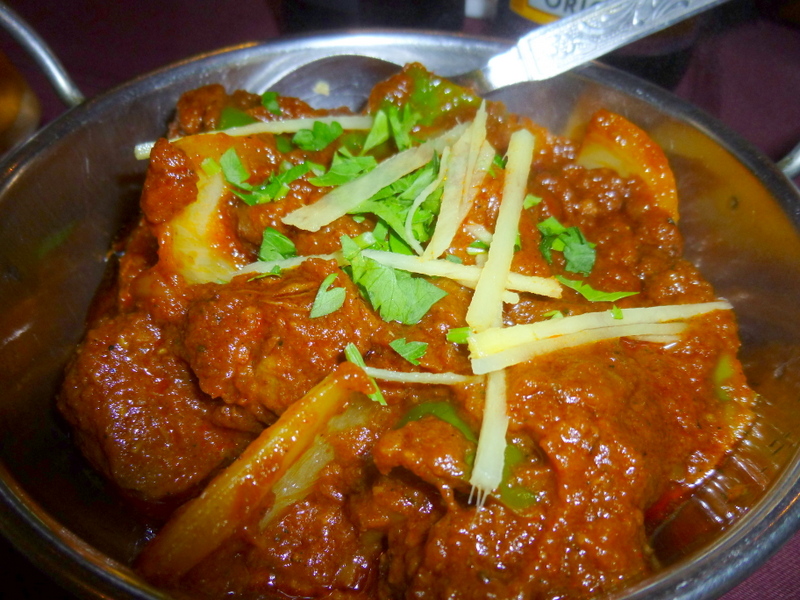 Lamb Karahi appeared twice on the Menu, we had to ask why. The Lamb Gosht Karahi was the Dry version, the straightforward Lamb Karahi was the Wet version. Jim and Hector went for the Gosht – dry, Marg the Masala version.