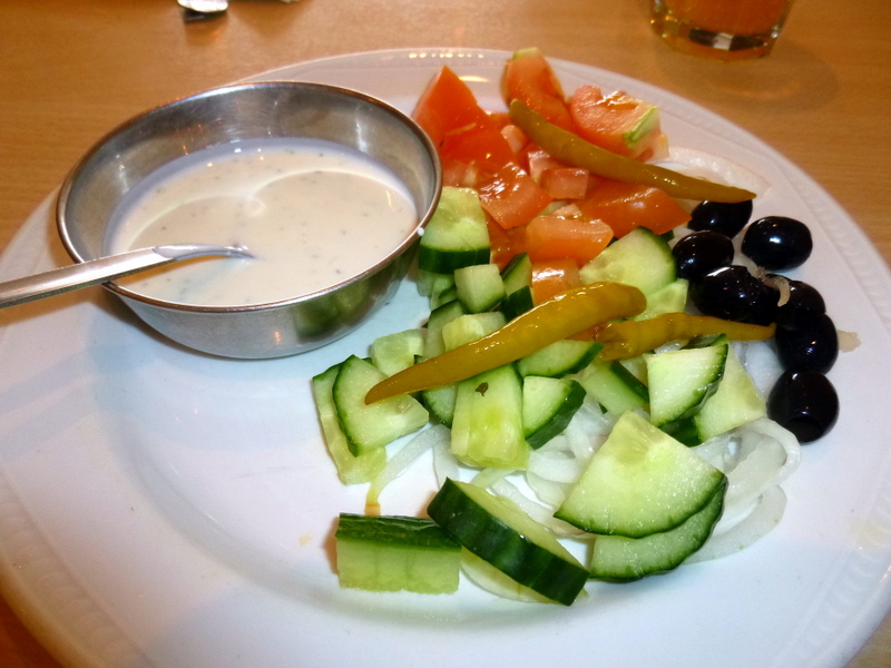 I arrived at the arranged time, 15.00 and was acknowledged by all the Staff, it is over a month since my last visit. My Soft Drink was brought and a Starter declined. This did not prevent the presentation of a Salad which made me smile. Chopped Tomatoes and Cucumbers, Onions and Black Olives, a Dip, where was the Falafel? I enjoyed a tasty Falafel in Budapest at the start of this very week.