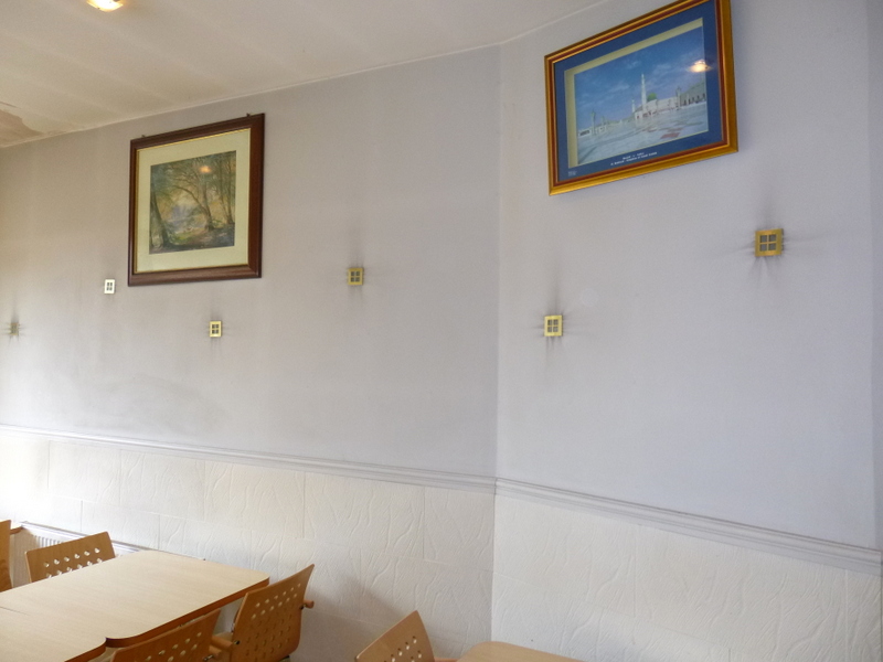 As mentioned in earlier reports,the premises suffered a roof leak a few weeks back. Redecoration is under-way, new wall lights have been installed and a TV wall bracket, oh no… Some new Artwork adorns the walls, including Jerusalem, which happens also to be an excellent source of Falafel. That was an unexpected punchline.