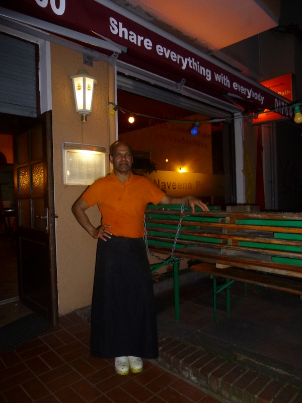 Fifty metres from Pension Braun in the Garden Suburb of Wedding lies the Naveena Path (Tegeler Straße 22, 13353, Wedding, Berlin). Yvonne looked bemused as Hector made it clear that this was in fact the next item on the Tin-Tinerary. Howard was straight in behind Hector, Mags swithered then joined us. Craig, Yvonne and Robin went away to have a Pils, ugh.