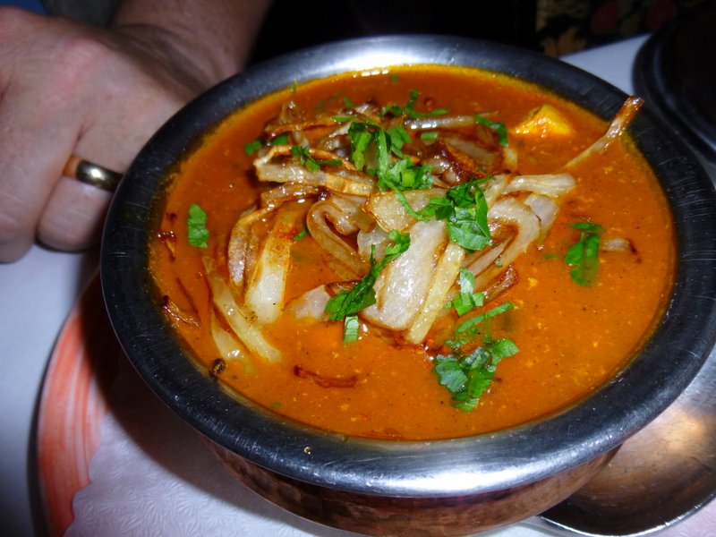 Doris #2 came back with the Menu, they only had enough Lamb left to provide one portion of Curry, would one of us have something else. I insisted that Howard have his choice given the sacrifice of earlier in the day, once again he insisted that as the Curry-Fuhrer, I must have what I ordered. Chilli Suwer was Howard’s #2 choice, a Pork Curry with Vegetables with a promise of Spice. Pork Curry is a rarity in the UK, one can understand why the majority of Glasgow and Bradford Curry Houses do not sell it, but those who do have India-proper connections should really offer it, after all they do sell Beef.