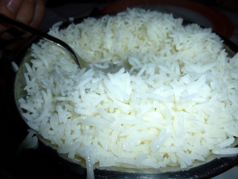 The Lamm Vindaloo was described as featuring Onion, so I asked Doris #1 if there was Potato with it. She pointed to the Lamm Jalfrezi and showed that it had Potato. I pointed to the aloo ending of Vindaloo and explained, this means Potato. Que? I decided not to add that Jalfrezi is an Onion rich dish, normally. So Lamm Jalfrezi it was then, and hold the Capsicum. We were communicating, I think. Howard chose well, he went for the Lamm Palak. No problem. Lord Clive chose Murg Vindaloo, which contradicts the explanation for eating Chicken that he gave in Crawley last week, he had not eaten Lamb today. We thought a single Nan to share would not be excessive, the Basmati Rice was included.