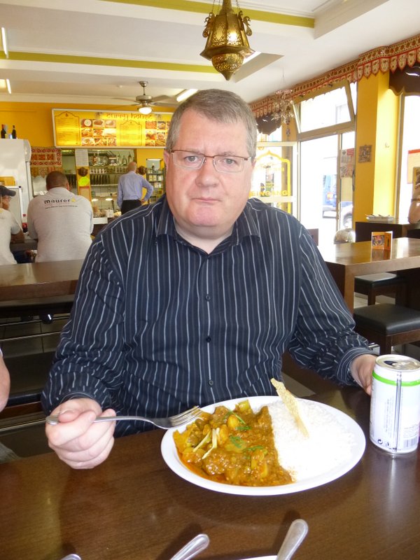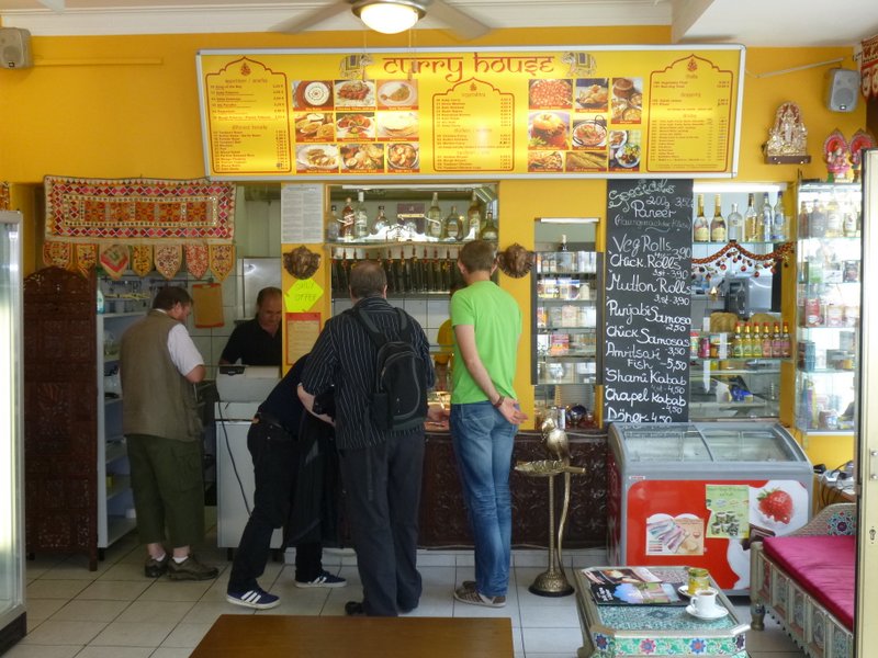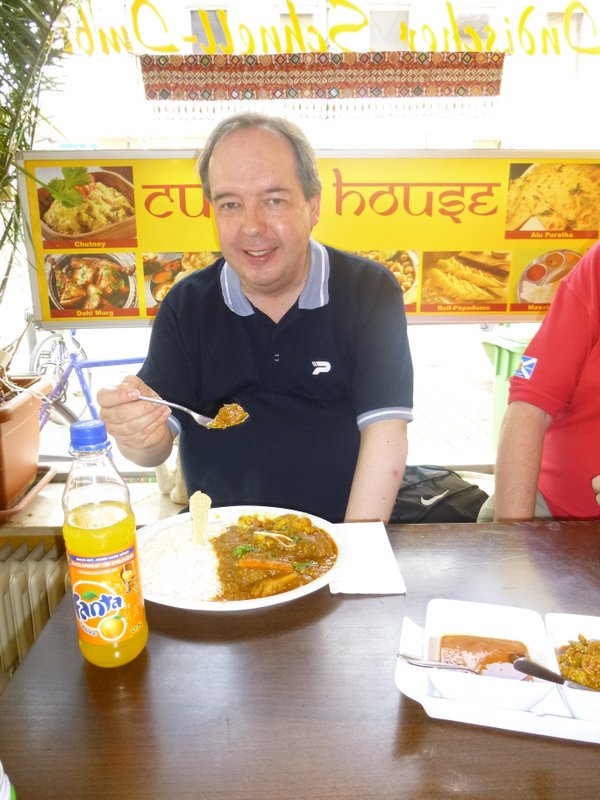 Hector’s Heroic Homecoming has returned to a familiar location, Nürnberg is our base for the next three nights. The Tin-Tinerary stated that there would be an Erlangen Curry for those who made the rendezvous for the 11.42 train north. Howard, Lord Clive and Neil signed up for the challenge of eating what is the Saltiest Curry Hector has ever experienced. The Curry House (Helmstrasse 11, 91054, Erlangen) is a Curry Schnell Imbiss, there is no ceremony, one orders from what is on display at the counter and pays up front.