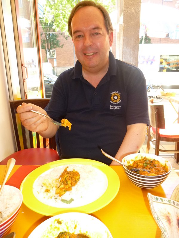 I showed the Curry-Heute Website on the trusty HTC, courtesy of the wi-fi to the Doris. The photo of Mr Jolly Kunjappu and Hector was instantly recognised: You are The Curry Man she remembered. She asked if it was my Job to Travel and Eat Curry. Is there such a Job? Doris regaled the joys of German Food as an alternative to Curry, I shook my head. She asked if German Curry was the best, well…