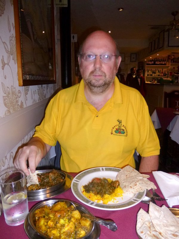 Trying to manipulate all the component parts to our meal was tricky on the small table. Once Marg had emptied her karahi a waiter was straight over to remove it, this helped. In fact the staff were very attentive and as the Regulars rolled in the banter was to the fore. When my camera appeared, a waiter was straight over to take our photo. This was a very friendly house.