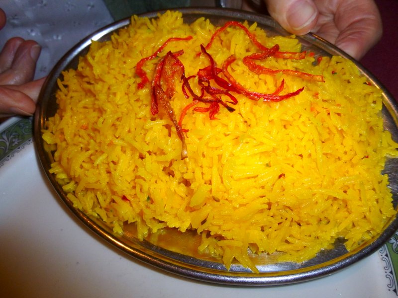 Marg announced she felt like Chicken Tonight…Light of India Chicken Supreme (£9.90) was amongst the dearest dishes on the Menu. It was described as Chicken stuffed with Mince but came with Pilau Rice, which may well have justified its comparatively inflated price.