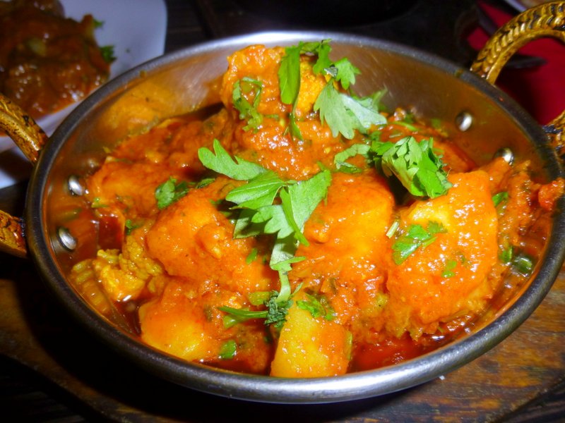 This was only Hector’s second Kofta Bhuna at Cafe Salma. On my last visit I ruined the experience by ordering a Lamb Bhuna but was carried away and ordered it – Hot. The flavours were lost, so today no chances were taken. The Kofta Balls were large, much bigger than those served in Bradford! The Coriander and Methi were to the fore in the outstanding Masala. Now to persuade [Stan.TC] to share one for Dessert on our next visit. The G&C Nan was slightly thinner than that served normally. This may actually have been an improvement, there was more chance of finishing one, alas this was not to be. The Aloo Gobi had more Cauliflower than Potato, the Kick was significant. An excellent Complement to the Meat and Sauce.