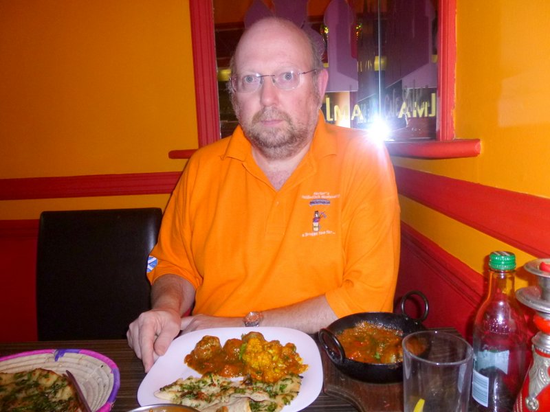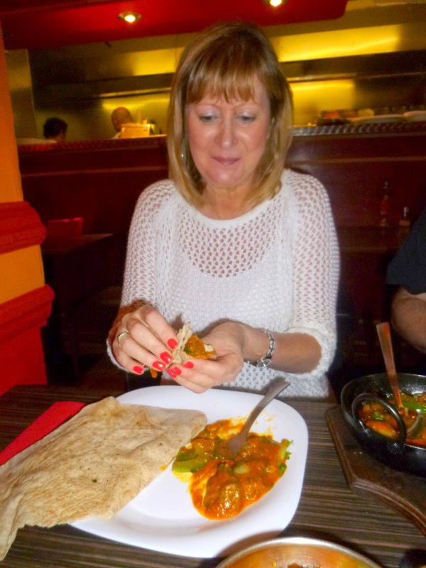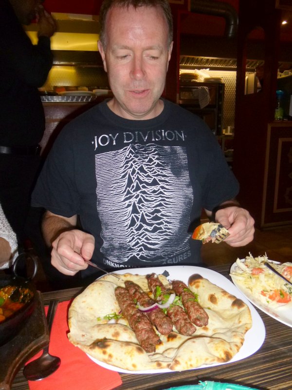 The Chefs were already busy completing the order for a family at an adjacent table. It was soon our turn. The Seekh Kebab was a quadruple serving. I was reminded of Craig sitting in Nürnberg eating his Sausages. Craig likes this sort of thing, he thoroughly enjoyed his meal, very tasty – not too Spicy.