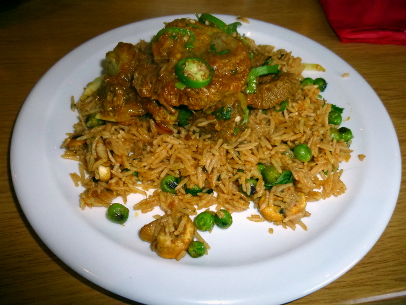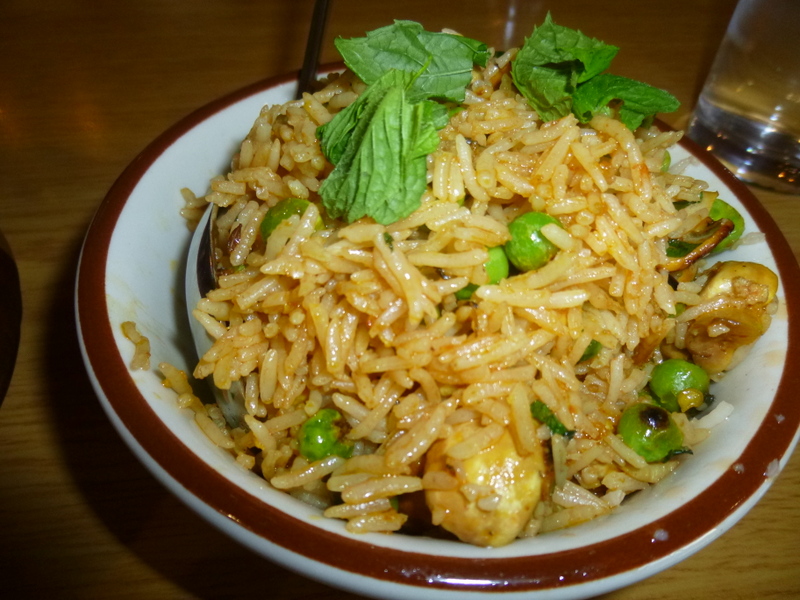 The Rice had an aroma of Clove, but not excessively so. Peas and Mushrooms were the added Interesting Vegetables – a good combination.