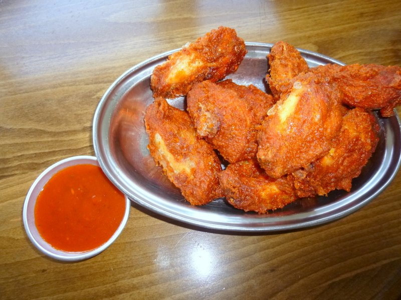 Clive went to the Bar to order the food. At this point I found a Comment by Bert from Belgium on my last visit. He highly recommended the Chilli Wang Wang and so the Light Lunch was expanded. This turned out to be a very generous plate of Spicy Chicken Wings. It was just as well we were sharing, nobody could have eaten a Main Course after this. The Wings were indeed Spicy and just in case there was an insufficient Kick, a small Bowl of Chilli Sauce was provided. We dipped but mostly ate the Chicken without. Chilli Wang Wang indeed.