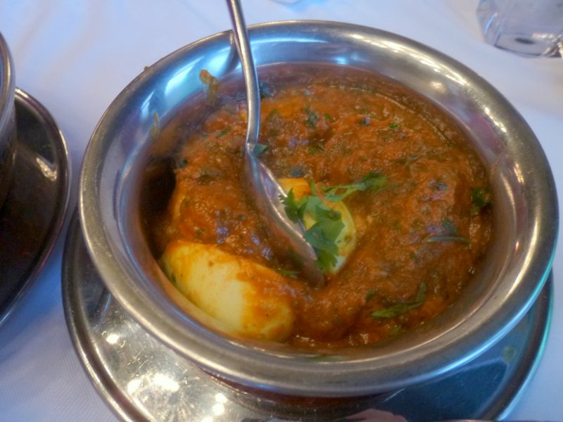Both Main Courses were presented in Dry and very Thick Masala, so we were off to a good start. The Lamb was Tender, not as soft as I have enjoyed of late but more than passable. The Masala did not have any significant Kick or burst of Flavour despite the inclusion of the Methi, perhaps it needed more? The Vegetable Side was possibly more impressive, I am finding myself enjoying Vegetable Curry more and more of late. This did have a distinctive flavour, a slight sweetness, not excessive, well balanced. The Okra was on the soft side but overall this did impress. One Chapatti was indeed more than enough – as is an Egg…