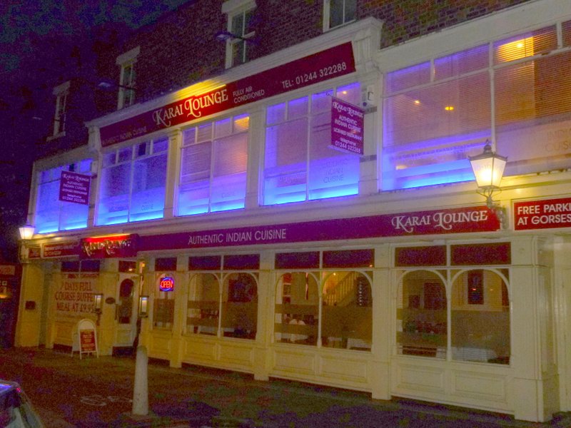 The Karai Lounge (10-16 Brookdale Place, Chester, CH1 3DY) is adjacent to Chester’s Curry Street and had seduced us by being close to a Micro-brewery Outlet and us being in possession of a Voucher guaranteeing Free Poppadoms and Dips. Such Entrées should always be free anyway.