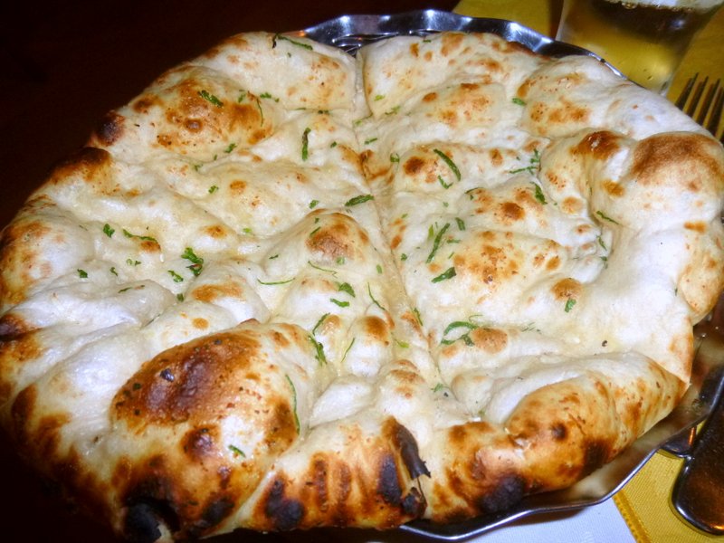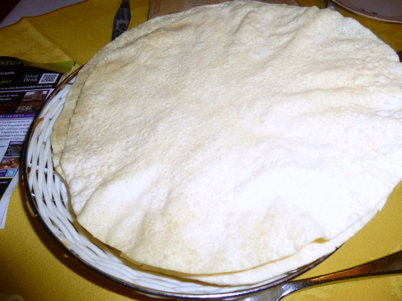 The Lamb Methi – with a Kick – was distinguishable from Marg’s normal version by having a single Green Chilli on top. The Masala looked very rich and clearly Onion based. Had more Tomatoes been added this would easily have passed for a Rogan Josh. Sadly the Methi was not that evident, the anticipated strong Herbal flavour did not emerge. I found the Lamb to be quite tough, Marg disagreed. She had expected the dish to be Drier than presented – who is this Lady? She enjoyed The Kick in her dish, I was permitted to finish what Marg couldn’t, had we been given the correct dishes? I will admit to polishing off the Green Chilli as I completed my meal and so the palate was in full Sprinkler Mode as I sampled the extra Lamb from Marg’s plate. The sharing of the Chapatti and the excellent Garlic and Coriander Nan worked well.. The Nan was a decent size and was Fresh and Puffy.