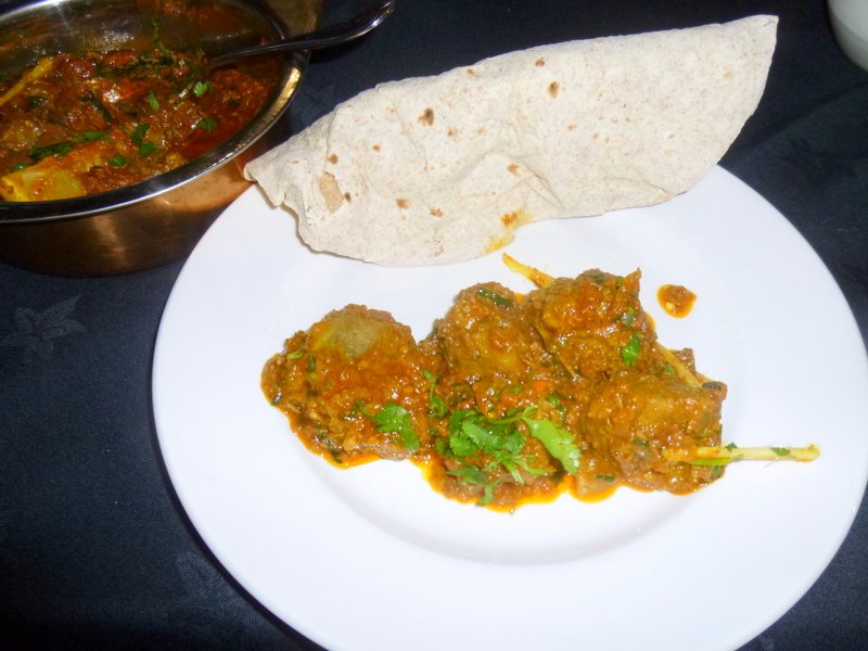 Mein Host was challenged by Dr. Stan and Hector ordering off-Menu. The Laal Lahori has disappeared from the Menu but I have been assured that it can still be ordered, I did so by the Half-Kilo and on-the-bone. Dr. Stan could well be the first person on the planet to order a Half-Kilo of Village Lamb Desi Korma off-the-bone, again not on the Menu. Dr. Rick considered the standard portion of Village Lamb Desi Korma on-the-bone to be sufficient. Four Chapattis and two Tandoori Roti were the Accompaniments. Dr. Rick also requested a Jug of Salt Lassi – a brave man.