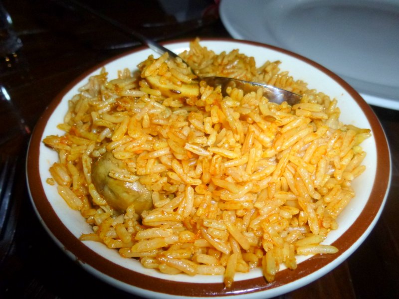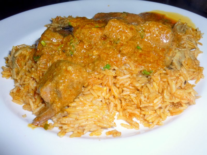 The Mushroom Rice came in a Bowl. This was quickly upturned and spread across the plate. The plates were now cold but were seriously hot when brought to the table. The First spoons of Desi Korma were heaped on, here we go…