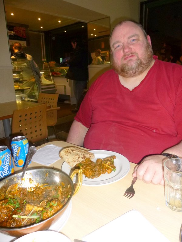 As reported on Saturday, tonight’s Curry Extravaganza at Yadgar (148 Calder St., Govanhill, G42 7QP) was actually arranged towards the conclusion of our last Curry-Heute at The Village (129 Nelson Street, Tradeston, Glasgow G5 8BA). The request was placed with Mein Host, Shkoor, to Feed Five. No specific Food Order was placed – He knows You Know. Alas, Alistair has not recovered from yesterday, a day in the company of Ricky, The Man from Bradford. Fortunately Hector received this information at lunchtime today, enough time to prevent wastage.