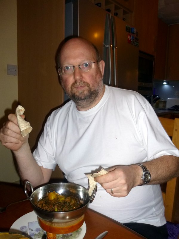 The outcome was Thick and Dry, the way I wish my Curry to be served. More Salt might have brought out the Flavours further. There was a Gritty Texture, the Coriander Stems no doubt.I have to admit to thoroughly enjoying my own creation, despite the poverty of the Sainsburys-supplied Chapattis. I would happily serve this to anyone who desired it.