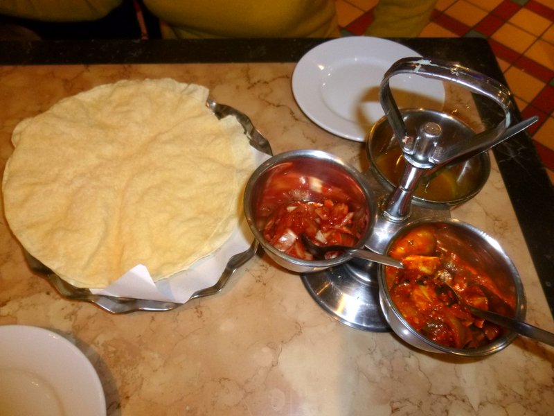 £16.30. Poppadoms, Chutneys, Dips, a Starter, a Main Course, Chapattis and an Ice Cream. And not a Table-Cloth in sight.