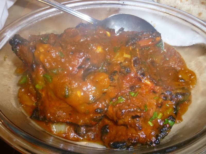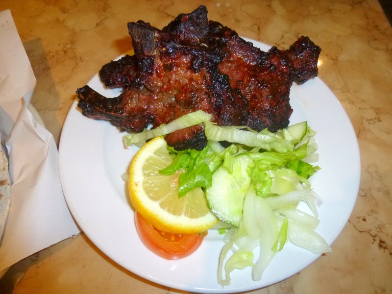 The Full Blown Krahi Lahori Lamb Chops numbered Five. For the extra £5 one gets the extra Chop, the Masala and the three Chapattis. Can anyone eat Three Chapattis? The Chops were wonderful. They were well cooked, well seasoned, soo Tasty I even managed a smile….