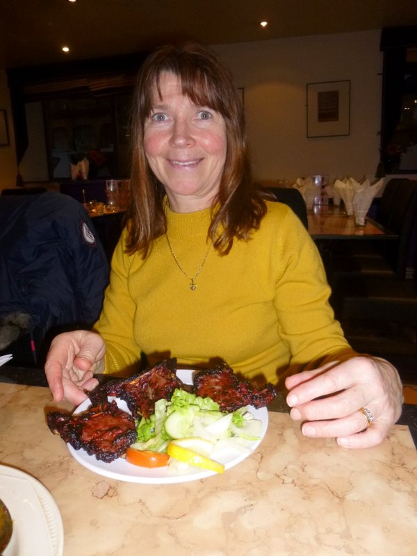The Masala was definitely from the Rogan Josh School. Thick with Onion and Tomato, a very very familiar and comforting Flavour. The combination of Chops and Masala was exactly what the Hector ordered. I only managed two of the three Chapattis. I thought Marg might have dived in but restraint was shown.