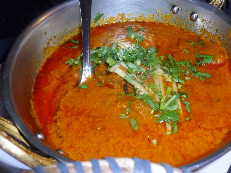Alan took my lead and decided upon the Lamb Lahori Kirahi, but Boneless and merely a Portion. Hector had the full Half-Kilo in mind and on-the-bone. Well, who could eat a Bonless Half-Kilo? Tracy who eschews Lamb chose the Chicken Punjabi Kirahi. Marg was in the mood for the Village Classic – the Lamb Desi Korma. Three Chapattis and a Garlic and Coriander Nan were the Accompaniments.